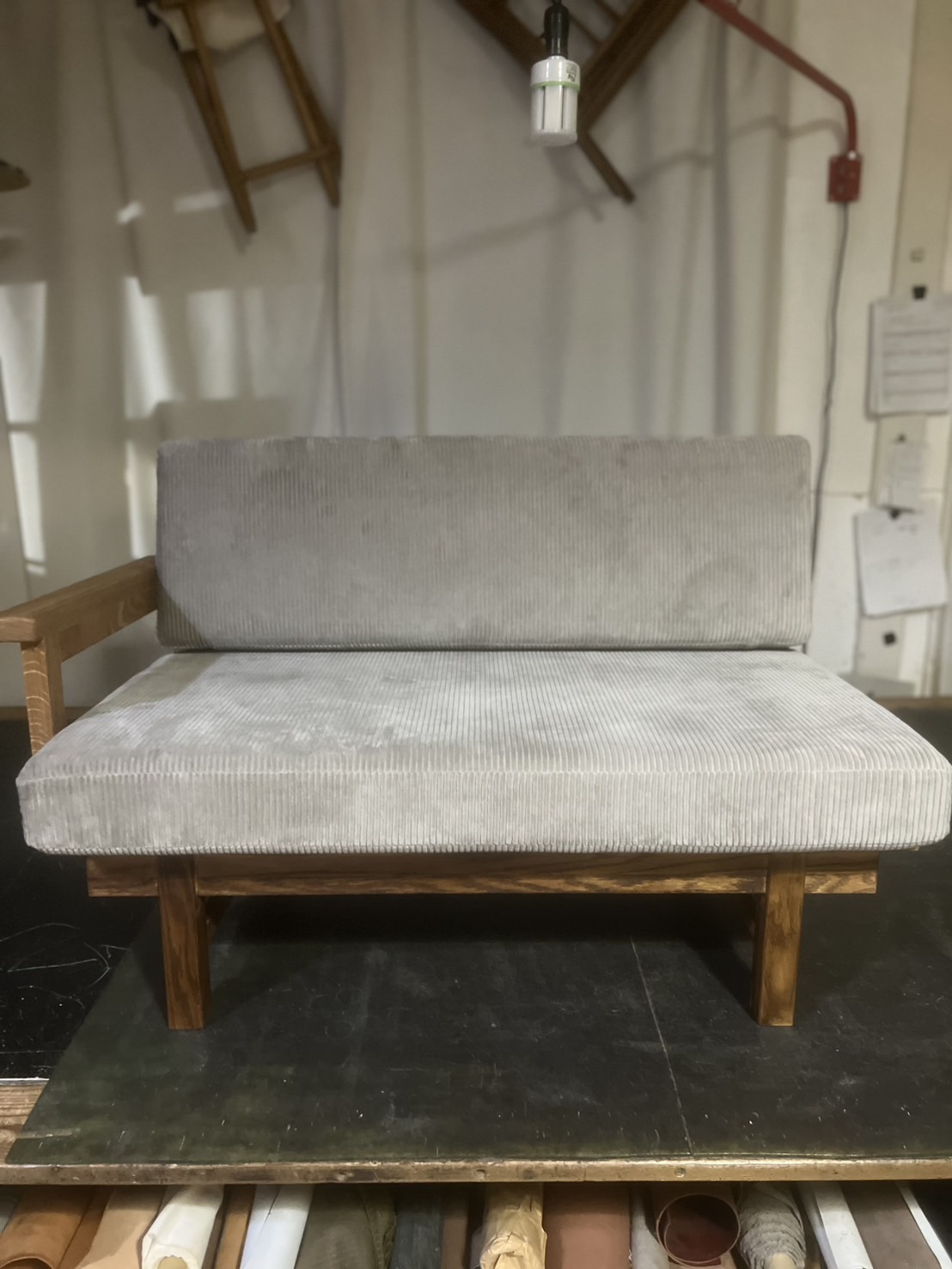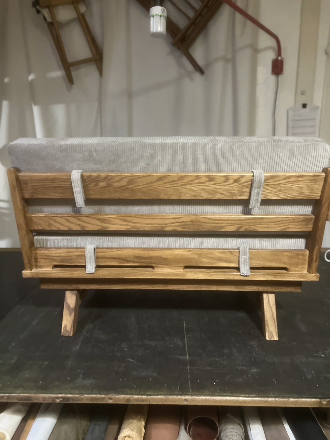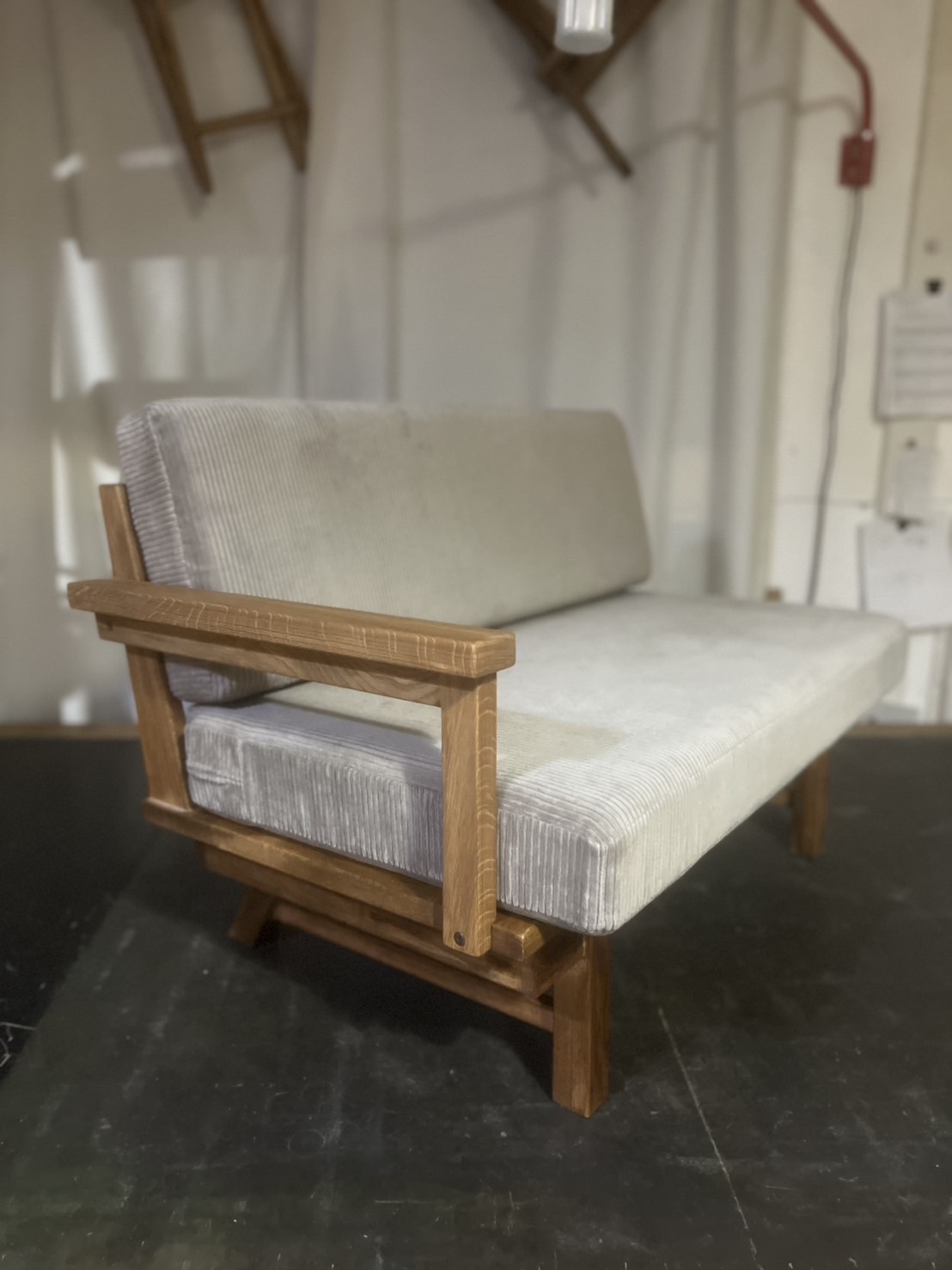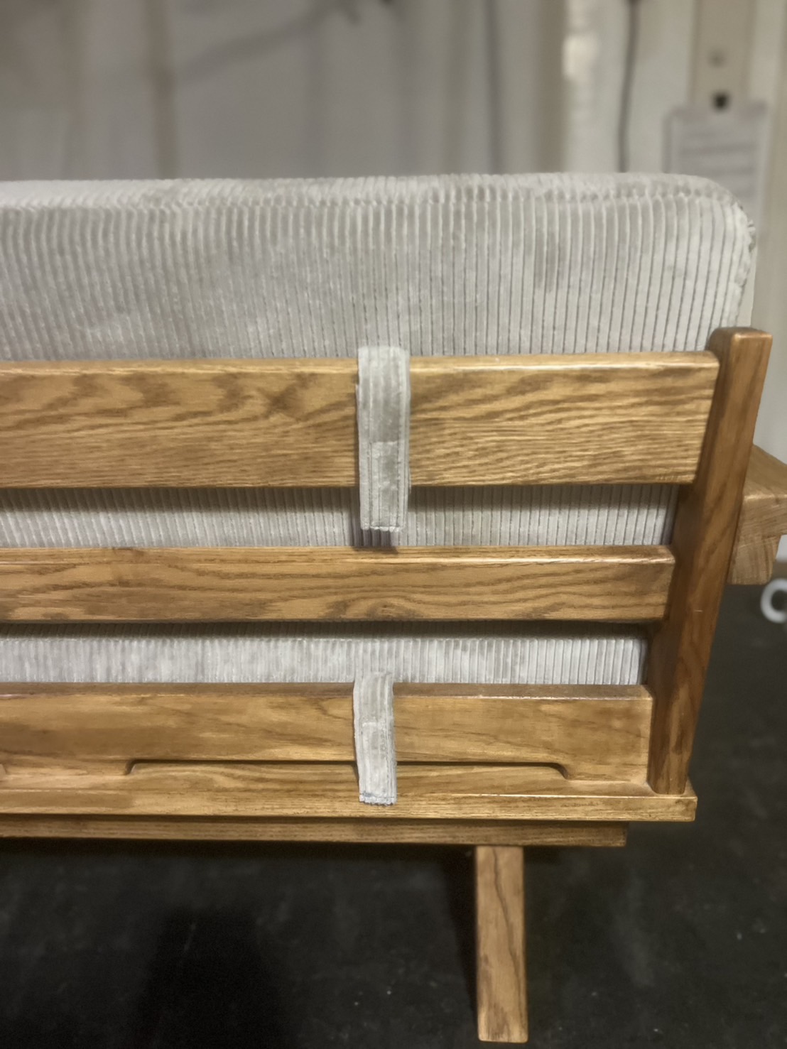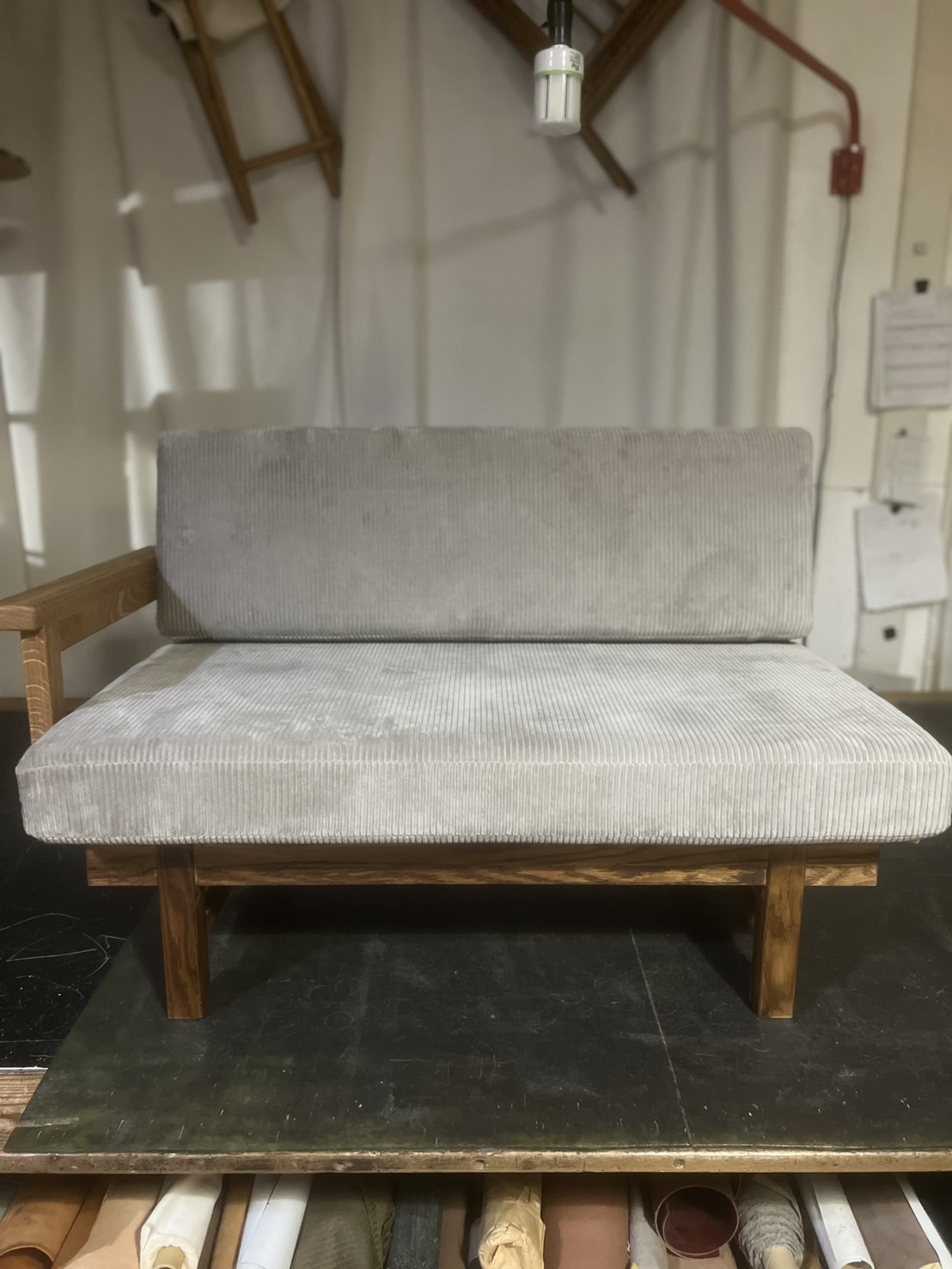【張り替え工程】生地張り替え/ウレタン新規/手すり制作/座面・背もたれのクッションを2つから1つずつにデザイン変更