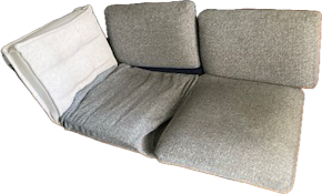 元々座面クッション2つ、背もたれクッション2つ、手すりなしのデザインを座面クッション1つ、背もたれクッション1つ、手すり有りのデザインに変更したいとのご相談でした。