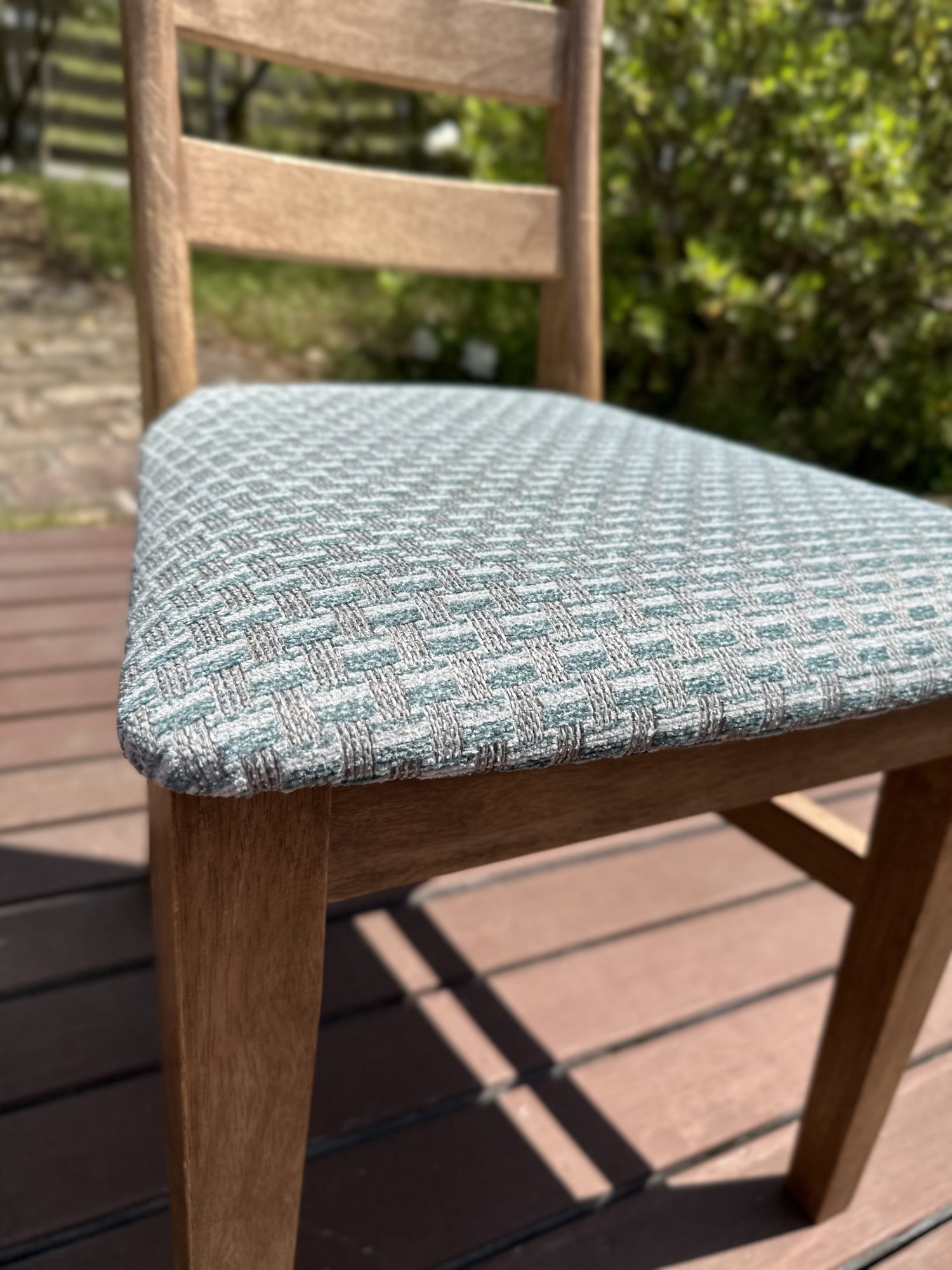椅子の張り替えご紹介 –汚れに強い機能性のある生地でダイニングチェア張り替え–