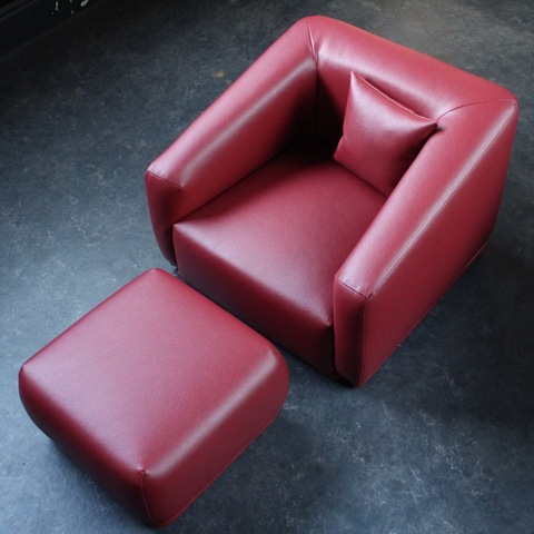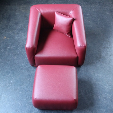 赤色の合皮レザーの子ども用のソファになります。(小さなクッション付き)