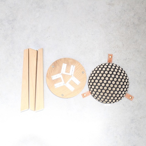 このスツールは脚、座面、クッション部分がバラバラに取り外せる仕様になっているのが特徴です。