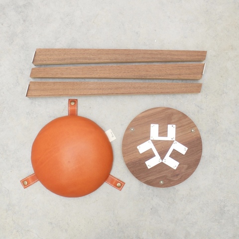 このスツールは脚、座面、クッション部分が取り外せる仕様になっているのが特徴です。