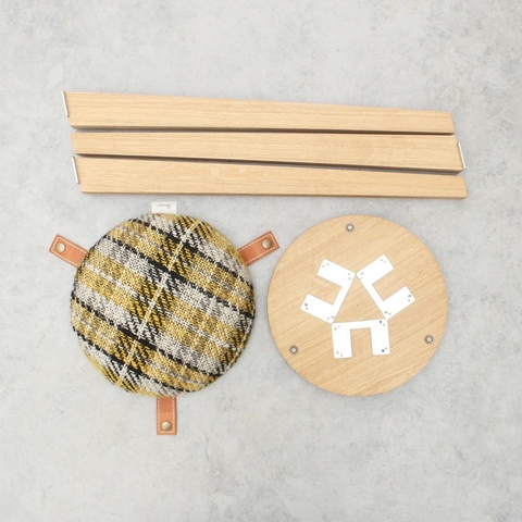 このスツールは脚、座面、クッション部分が取り外せる仕様になっているのが特徴です。