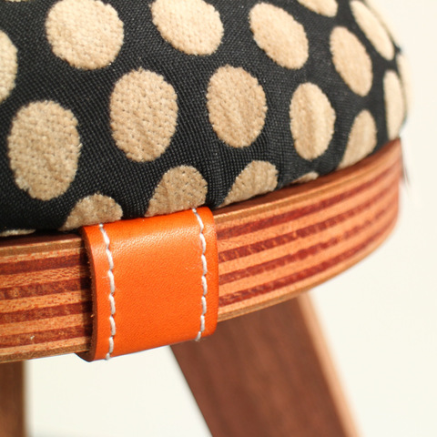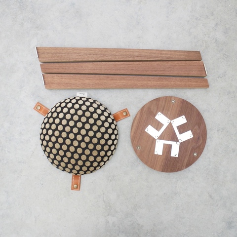 このスツールは脚、座面、クッション部分が取り外せる仕様になっているのが特徴です。