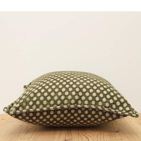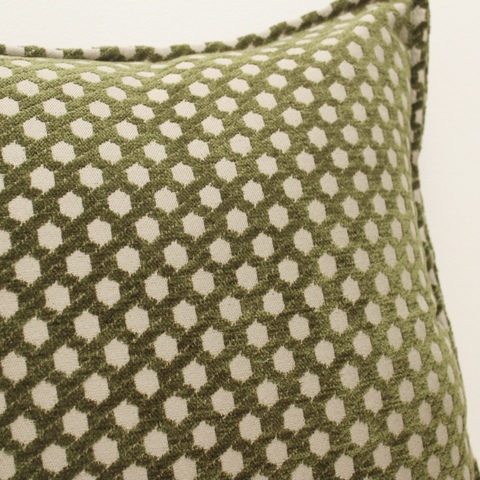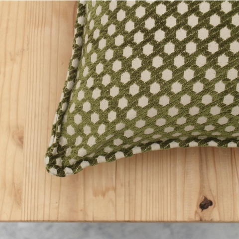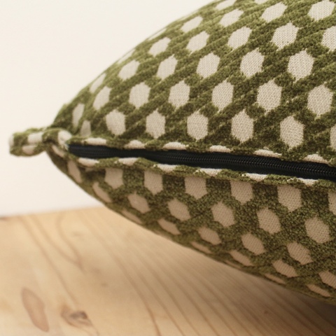 六角形のドット柄に絶妙な色合いのクッションカバーとなっています。