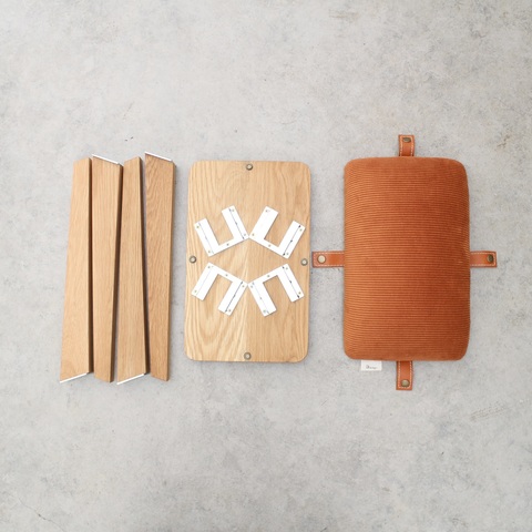 このスツールは脚、座面、クッション部分がバラバラに取り外せる仕様になっているのが特徴です。