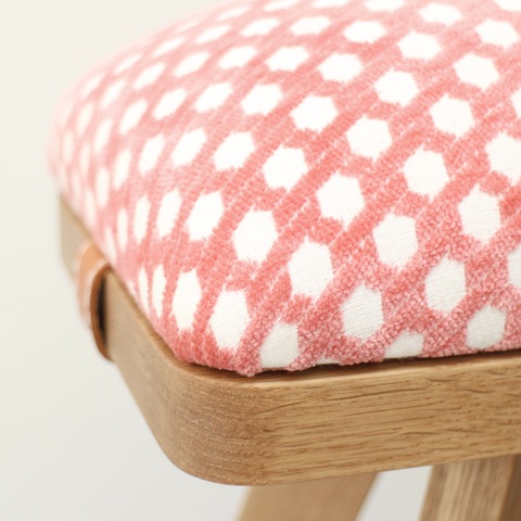 目を惹く六角形のドット柄に絶妙な色合いのスツール。