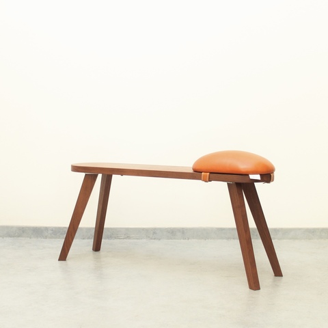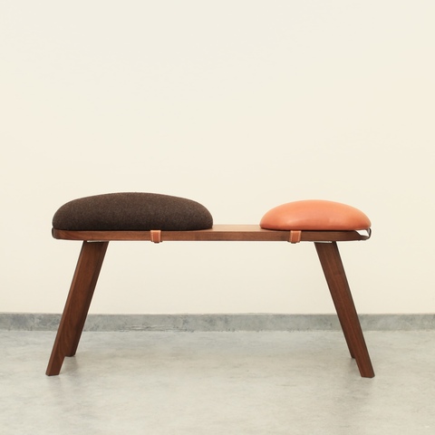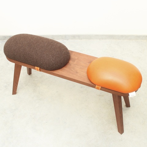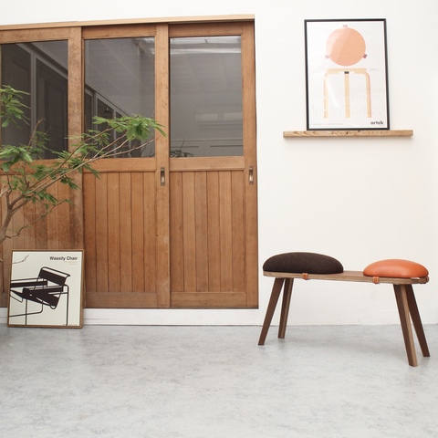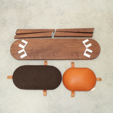 このベンチは脚、座面、クッション部分が取り外せる仕様になっているのが特徴です。