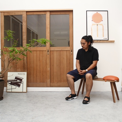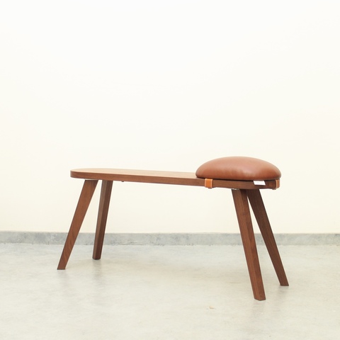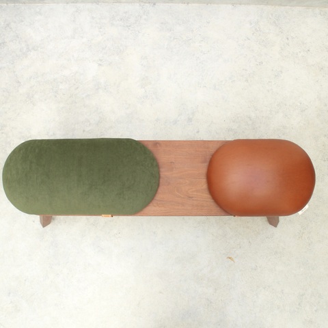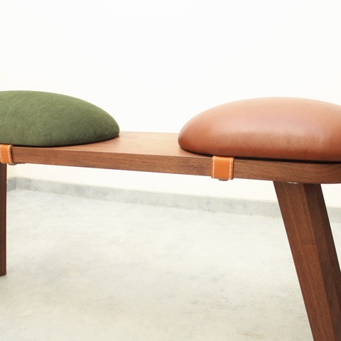 このベンチは脚、座面、クッション部分が取り外せる仕様になっているのが特徴です。