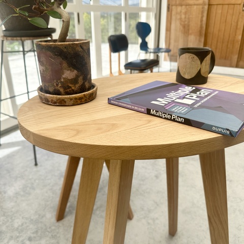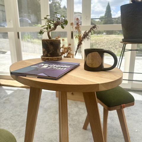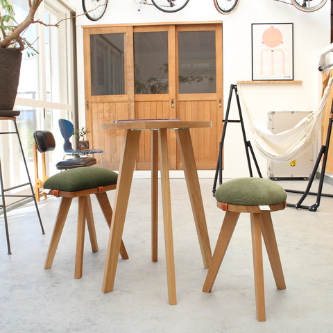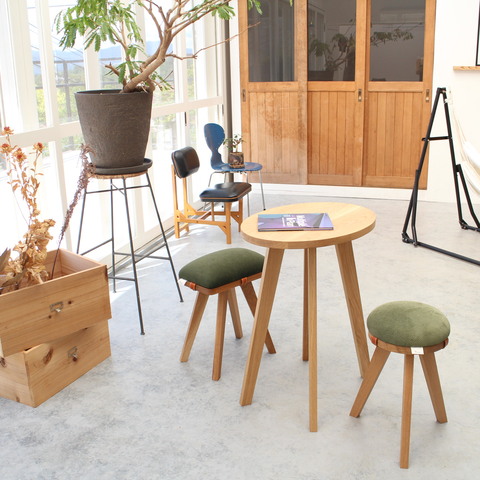 このテーブルは脚、座面が取り外せる仕様になっているのが特徴です。