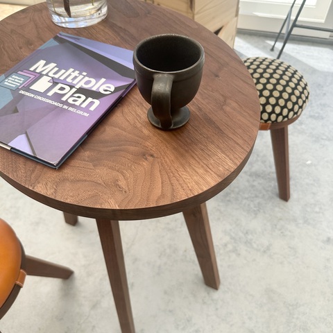このテーブルは脚、座面が取り外せる仕様になっているのが特徴です。