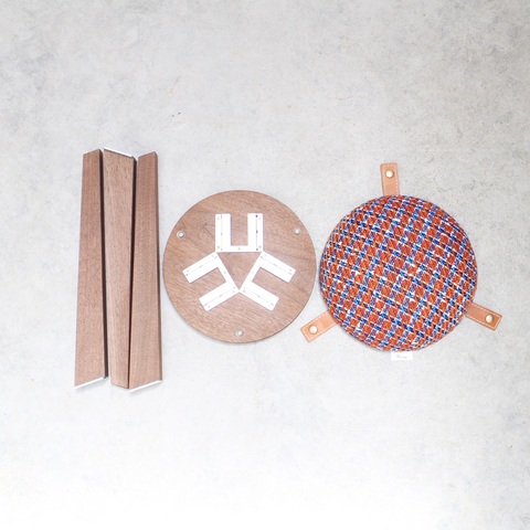 このスツールは脚、座面、クッション部分がバラバラに取り外せる仕様になっているのが特徴です。