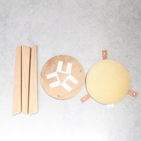 このスツールは脚、座面、クッション部分がバラバラに取り外せる仕様になっているのが特徴です。