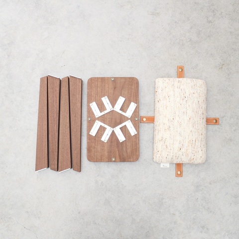 このスツールは脚、座面、クッション部分がバラバラに取り外せる仕様になっているのが特徴です。