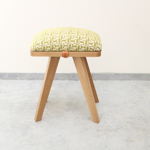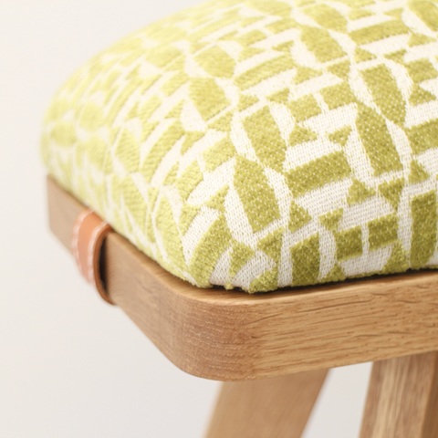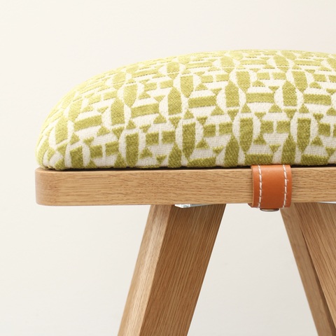 スペインからの輸入生地で目を惹く幾何学模様に絶妙な色合いのスツール。