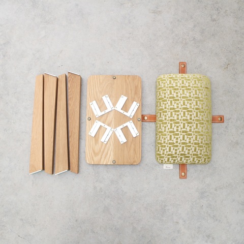 このスツールは脚、座面、クッション部分がバラバラに取り外せる仕様になっているのが特徴です。