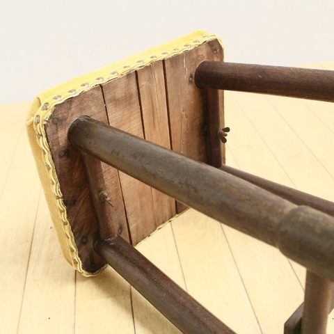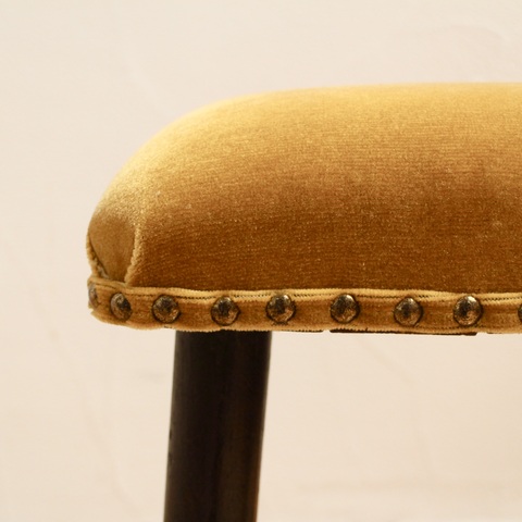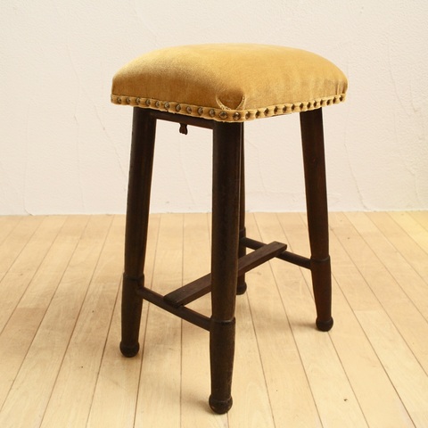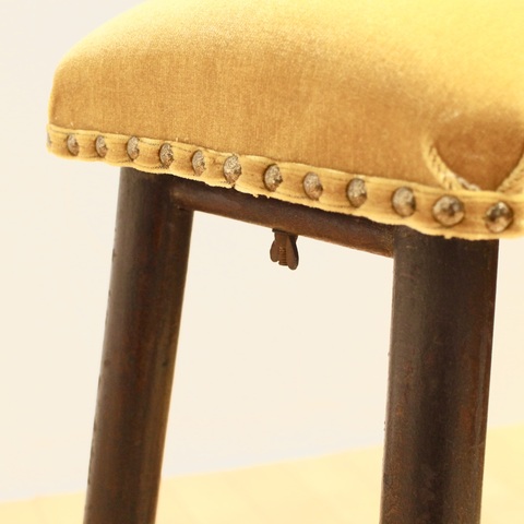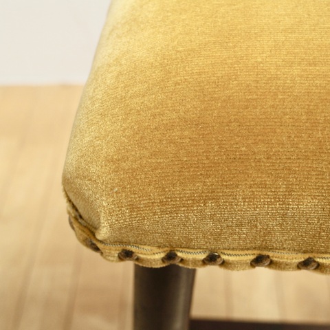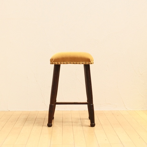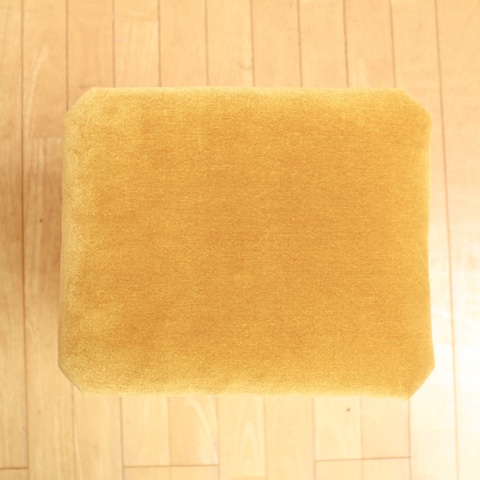 山吹色の生地と鋲のデザインのスツールにリメイクしました。