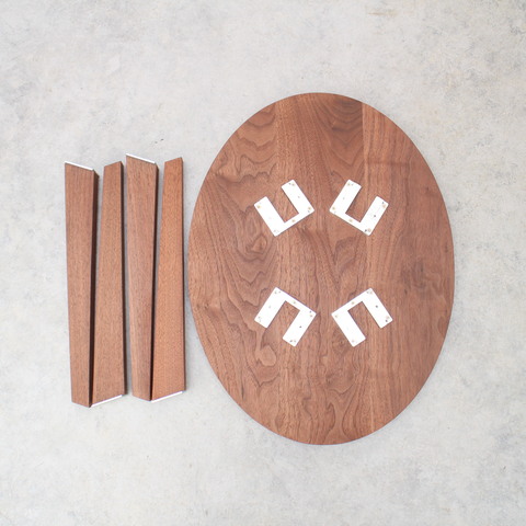 このテーブルは脚、座面が取り外せる仕様になっているのが特徴です。
