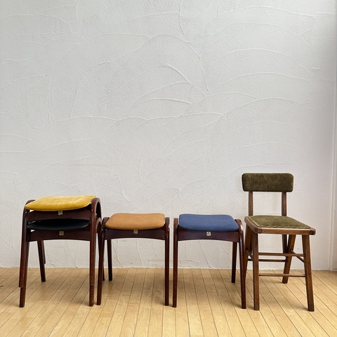 他のページに違うカラーの生地で張ったスツールも販売中ですので、よろしければそちらもご覧下さい。