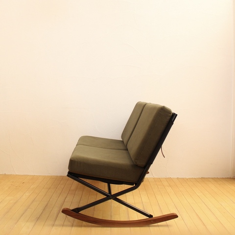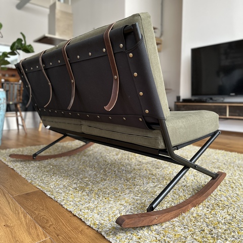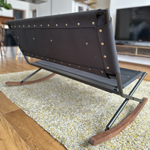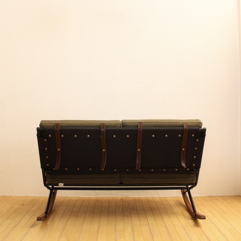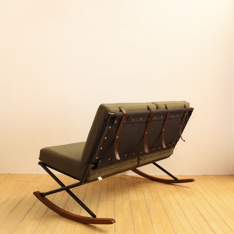 ロッキングチェアには珍しい二人掛けソファサイズ。