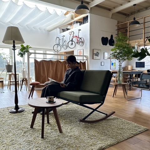 ロッキングチェアは元々庭でくつろぐために生まれた椅子だそうです。心地よい揺れはリラックス効果があります。