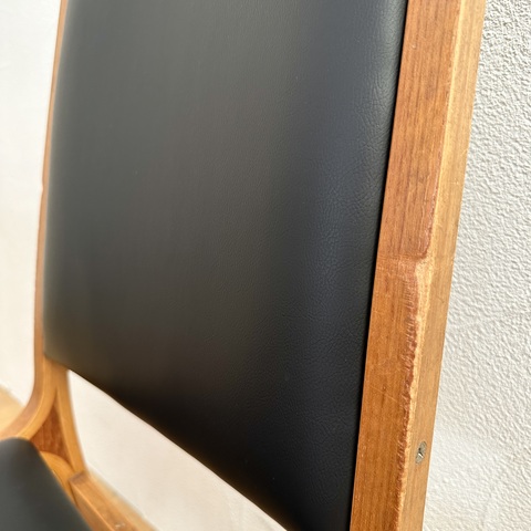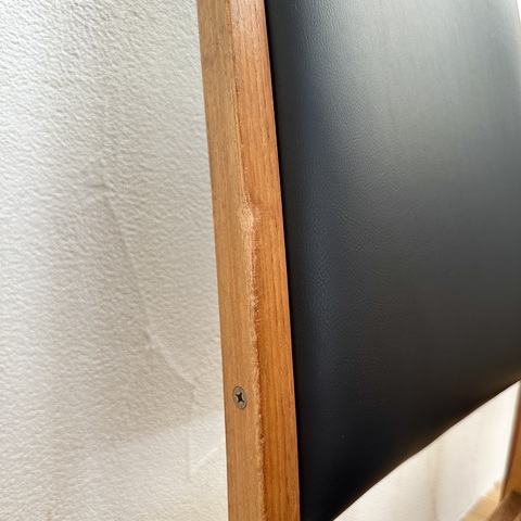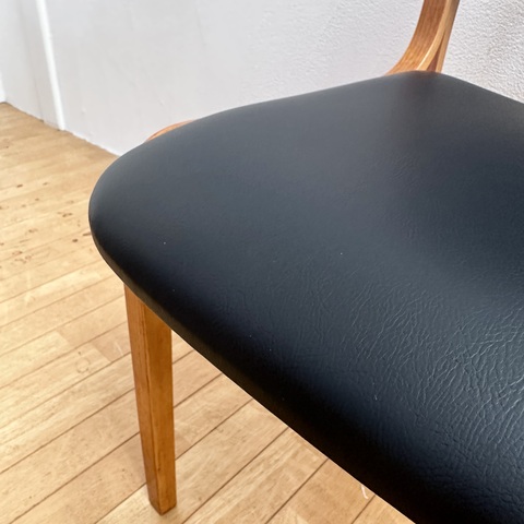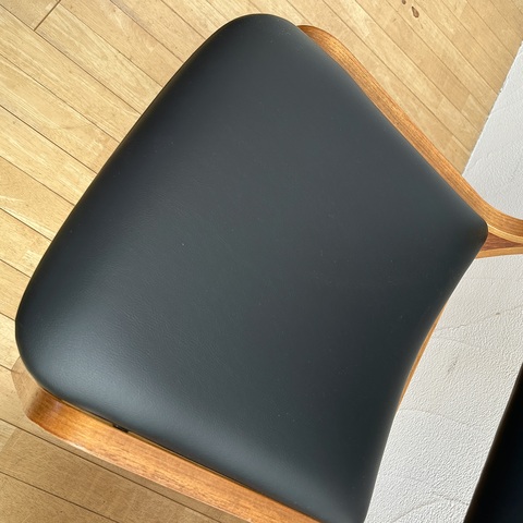 usedチェアの座面を新しい合皮レザーの黒色の生地に張り替えました。