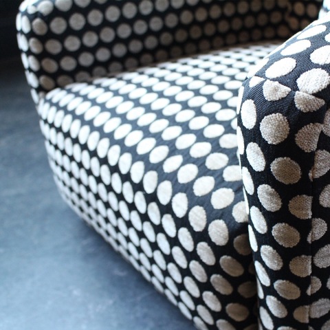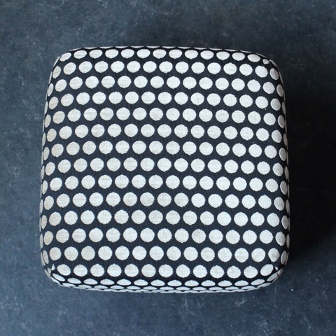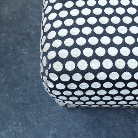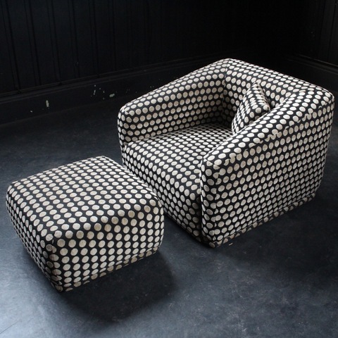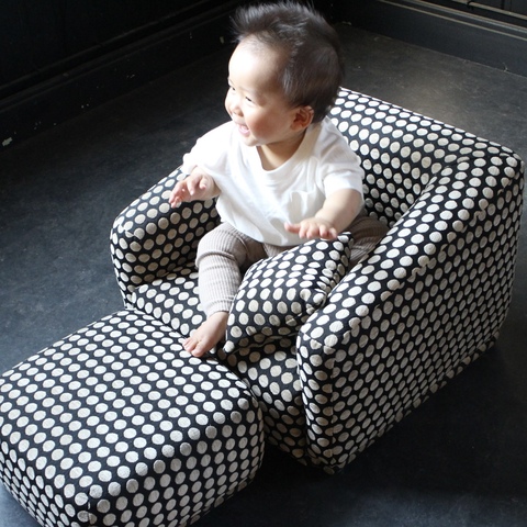 ドット柄の子ども用のソファとオットマンのセットになります。(小さなクッション付き)