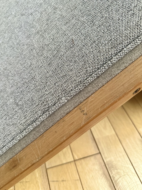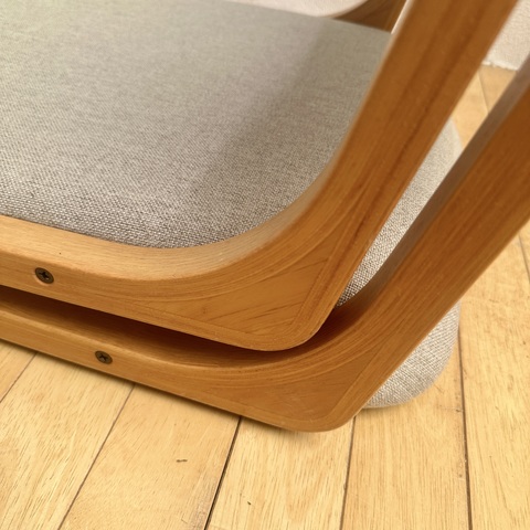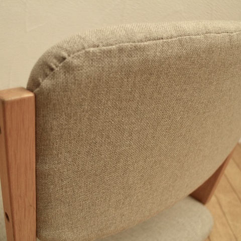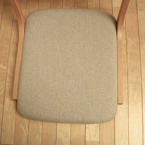 usedチェアの座面を新しいベージュのファブリックに張り替えました。