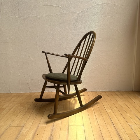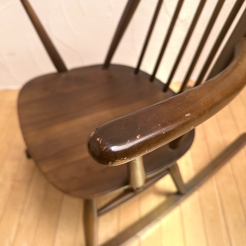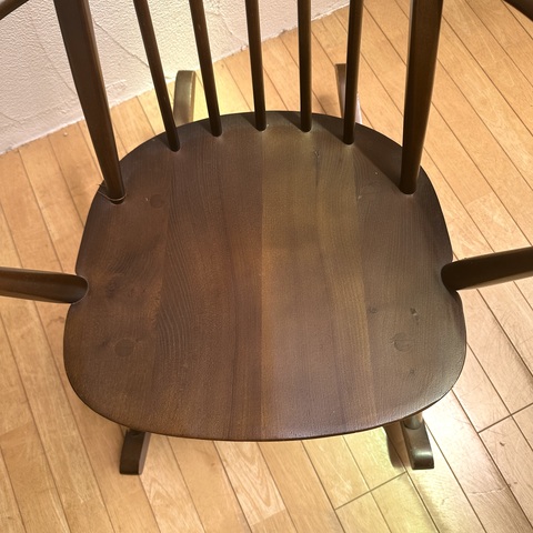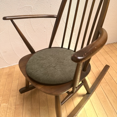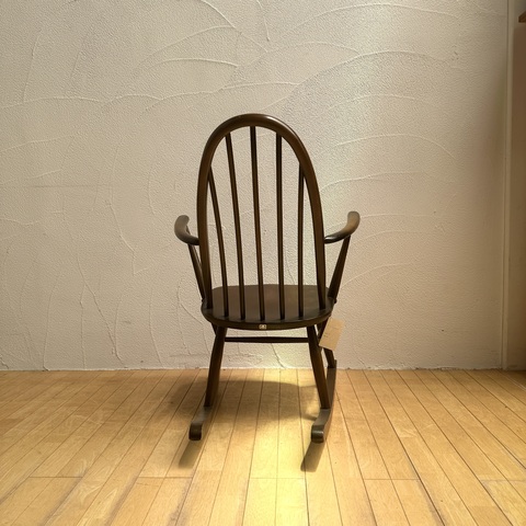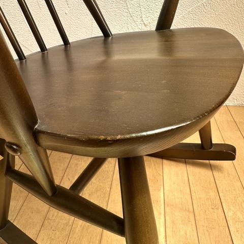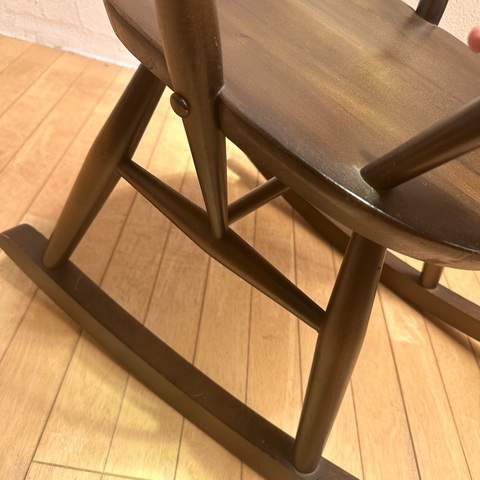 可愛らしいフォルムのロッキングチェア。コンパクトなサイズ感が珍しく、とても座りやすい椅子です。
